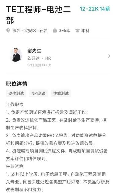 来源/欣旺达Boss直聘招聘信息 新能源前瞻