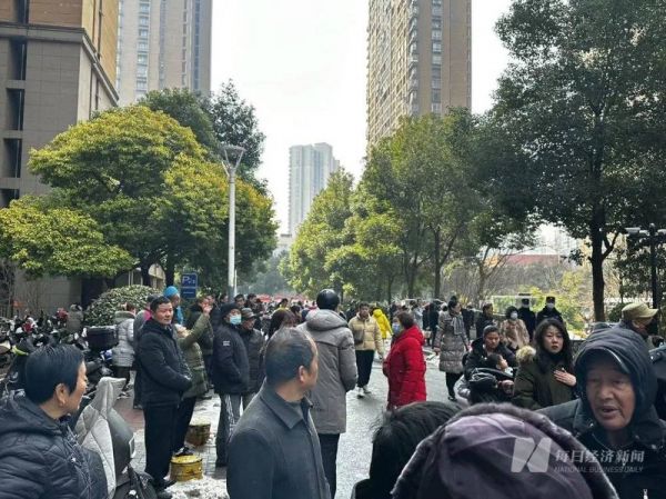 2月25日中午,失火楼栋前有许多周边住户,每经记者黄海拍摄
