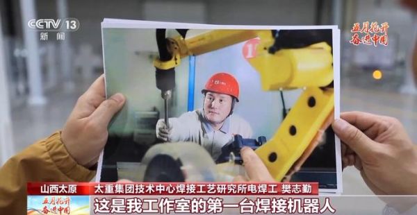 太重集团技术中心焊接工艺研究所电焊工 樊志勤:这是我工作时的第一台焊接机器人。对我们企业来说也是最早的一个自动化焊接机器人,我们想从机器人中发现一些优点,也能找到一些问题,怎么去克服它。这台设备对我们来说是意义非常大。