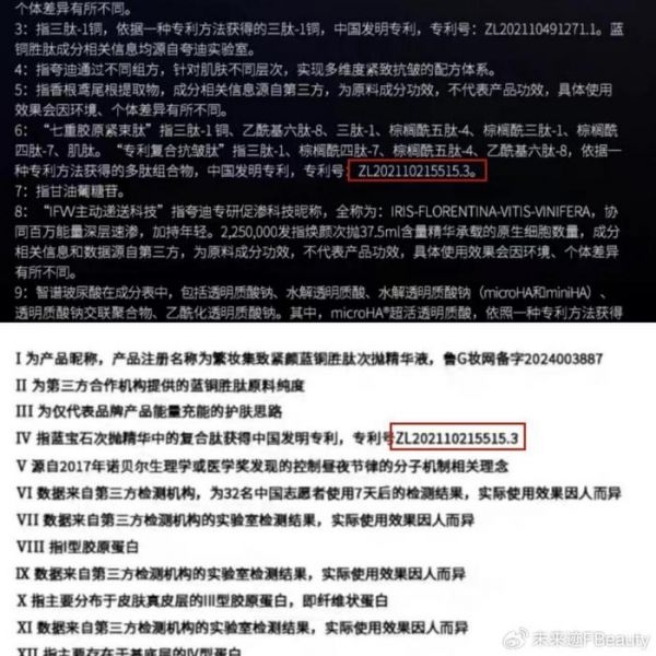 值得一提的是,繁妆首批上市的次抛精华,从产品名到定位都与夸迪高度相似,繁妆所推出的“蓝宝石次抛”不仅和夸迪一样主打蓝铜胜肽,其核心成分专利更是和夸迪用的同一款。该商品详情页中显示其使用的“复合肽”获中国发明专利,专利号为ZL202110215515.3,和夸迪“蓝次抛精华”所使用的专利相同。