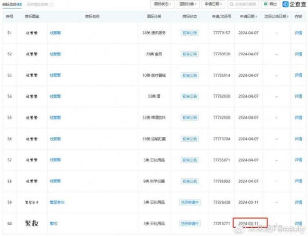 企查查显示,该公司目前有“枝繁繁”“繁妆”“FAN MAKEUP”“瑾然”“繁星参半”“揽华”等多个商标在申请注册中,最早一个名为“繁妆”的商标申请注册时间为今年3月11日。
