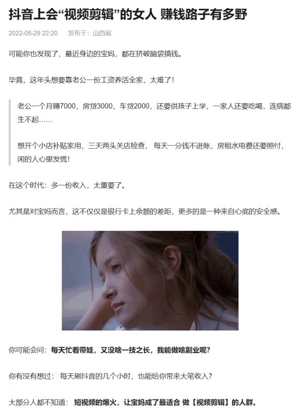 就截图这个,在家剪视频月入过万,看起来是不是就一个割韭菜课程?