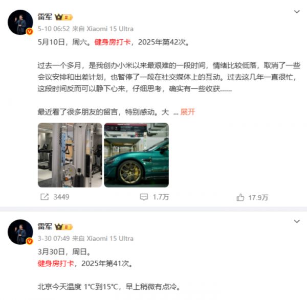 清晨7点,当大多数人还在梦乡中,小米创始人雷军却在微博中晒出了健身房照片,这样的生活分享已经持续了近一年。
