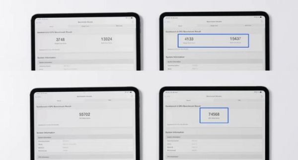 iPad Pro M5 的 CPU 单核跑分为 4133 分,多核跑分为 15437 分,GPU 跑分达到了 74568 分。