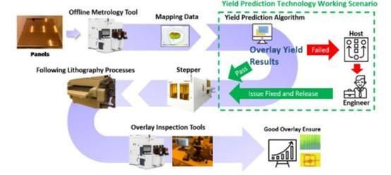 为加速套刻精度提升,团队建立了一种模拟最终良率与不同工艺参数条件之间关系的评估方法。Chang博士表示:“通过运用这项技术(如图4所示的全流程模拟),用户可借助仿真确定最佳参数,并通过运行认证基板验证预测结果。”