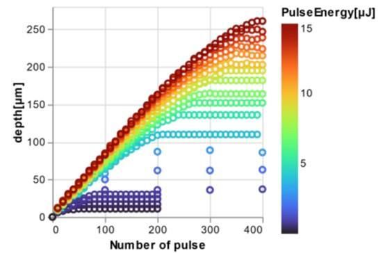 尽管LIDE被视为玻璃通孔的领先工艺,但企业仍在探索更环保的解决方案,以避免使用有毒的氢氟酸。东京大学的Toshi Otsu与同事成功在100微米厚的朝日玻璃ENA1材料上制备出宽度6微米、间距25微米的孔洞。该方法采用不同脉冲能量和发射次数的准直深紫外激光束(257纳米)。研究人员指出:“超短脉冲激光的使用最大限度地减少了对周围材料的热效应,实现了精确而清洁的加工。”