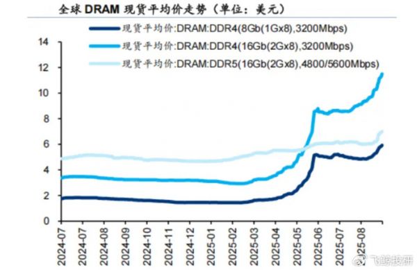 数据显示,9月全球DDR4芯片现货价格环比飙升31%,DDR5芯片现货价格环比上涨28%。