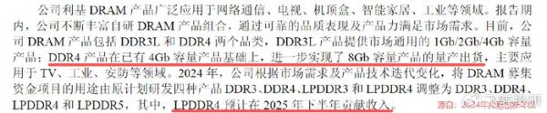 在利基型DRAM产品方面,兆易创新也没少下功夫。2024年其DDR4 8Gb产品已量产出货,研发中的LPDDR4新品也预计2025年下半年贡献收入。