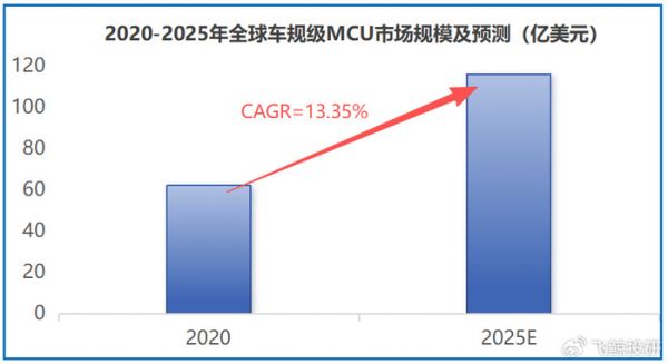数据显示,2020年全球车规级MCU市场规模还仅为62亿美元,预计2025年将达到近120亿美元。