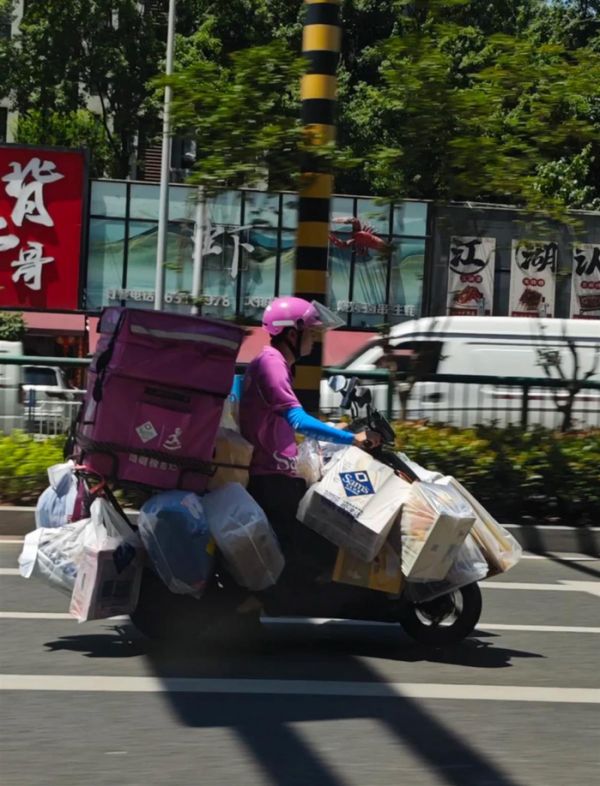 网友发出的各种山姆配送员超载照片,看得人又傻眼又担忧,电动车上货物堆成“小山”,甚至比车身体积还大许多,有的车辆后视镜都被挡得严严实实,就这样在城市道路上争分夺秒,无疑给交通安全带来了极大风险,不但可能危及配送员的生命安全,还可能连累其他车辆路人,实在令人心惊胆战。
