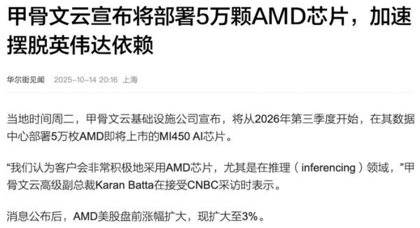 网址: 英伟达腹背受敌!OpenAI首颗自研AI芯片曝光,甲骨文将部署5万颗AMD AI芯片!网友:老黄千亿投资打水漂了? http://m.xishuta.com/newsview143159.html