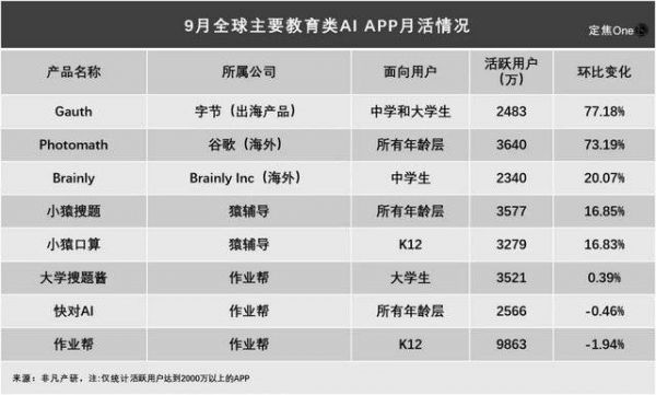 各大应用榜单刚刚公布的9月数据,揭示出一个AI应用新风向——教育类AI应用正加速崛起。
