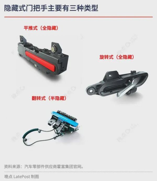 它们都比传统机械门把手贵。最贵的全隐藏门把手因为有更多的电子系统,成本可以三倍于半隐藏式门把手,每车千元左右。