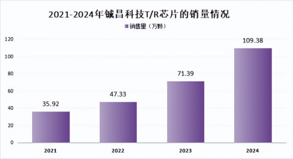 2021年开始,铖昌科技的相控阵T/R芯片销量一路狂奔,2024年全年的销量突破了109万颗,同比增长超过53%。