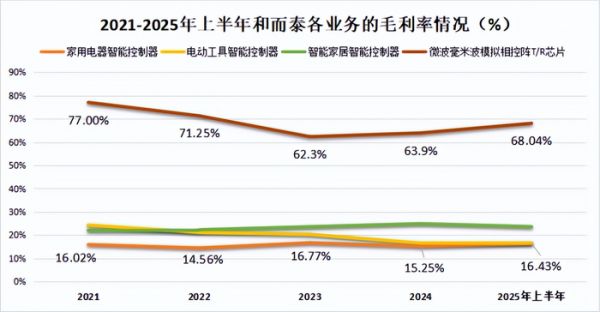 而高毛利业务的强势崛起,直接把和而泰2025年上半年整体的毛利率拉到19.13%,比2024年同期增加了1.66个百分点。