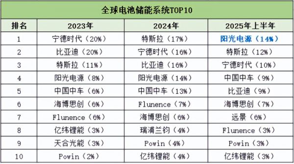 2025年上半年,阳光电源的储能系统出货量达到19.5GWh,同比猛增150%,以14%的全球份额从第四强势登上第一,将宁德时代、比亚迪都甩在了身后!