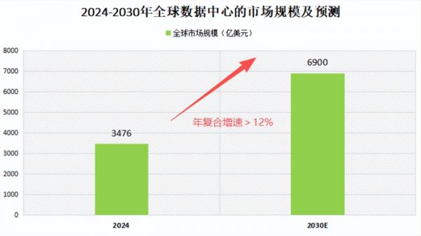 预计2030年,全球数据中心市场规模有望达到6900亿美元,2024-2030年的年复合增速超过12%,这有望带动全球AIDC电源需求高速增长。