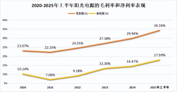 2025年半年报显示,尽管其光伏逆变器业务的毛利率比2024年同期下滑了1.88个百分点,但随着高毛利的储能业务收入比例提高,其整体毛利率增至34.36%,比2024年同期增长了1.94个百分点,超越了宁德时代(25.02%)。