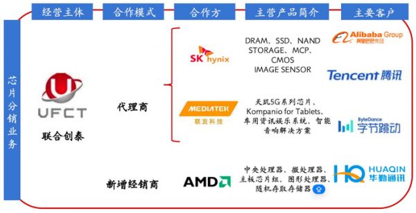 据开源证券整理,香农芯创收购来的联合创泰,获得了多家全球顶尖半导体原厂的代理授权,其核心代理品牌包括SK海力士、AMD、联发科、兆易创新,寒武纪等品牌代理资格,积累了覆盖云服务、5G通信、汽车电子、消费电子、物联网等多个行业客户资源,并成功切入阿里巴巴、腾讯、字节跳动等核心云服务客户,是上游生产商和下游客户的桥梁。