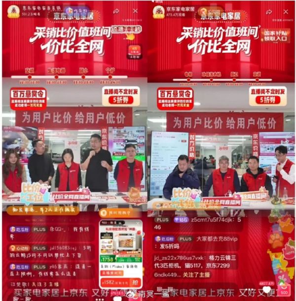 美的空调和厨房小家电品类负责人也来到直播间,力挺京东为用户比价。31日,海尔品牌相关负责人也与京东空调采销负责人共同上播,引起了大量关注。