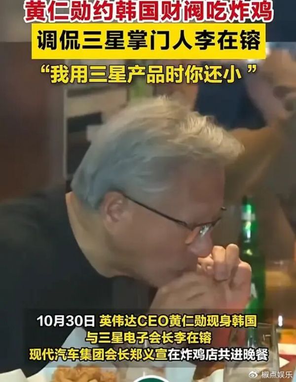 喝酒聊芯片大单?黄仁勋约三星、现代会长吃炸鸡 重申将宣布“大消息”