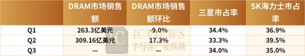 随着SK海力士Q3财报的公布,新一季度DRAM王座竞赛也已经有了答案。