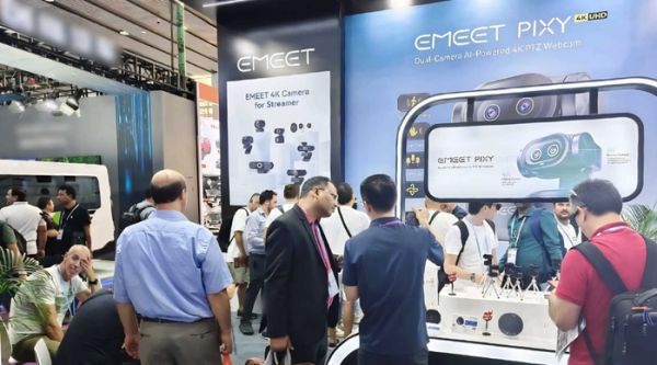 在本届广交会上,EMEET重点展示了旗下明星新品——4K超清双目AI智能云台摄像头EMEET PIXY 。该产品融合双镜头架构(4K主成像镜头+AI辅助镜头)、手势控制、智能追踪等技术,可灵活应对直播带货、内容创作、视频会议等多元化场景,为全球用户带来更高效、更智能、更具创意的AI影像体验。