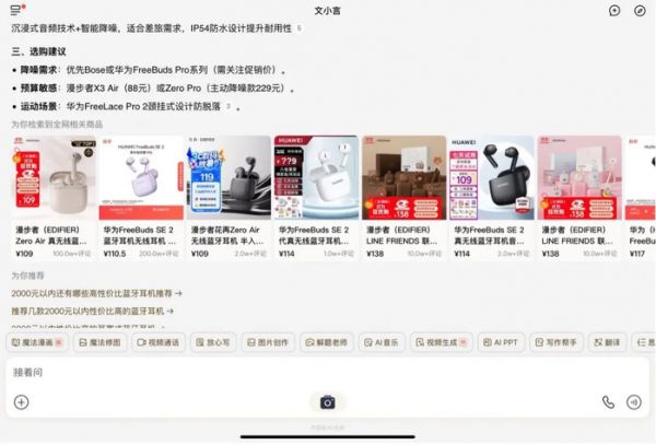 文小言依托搜索展示全网相关商品,让用户自行选择平台。