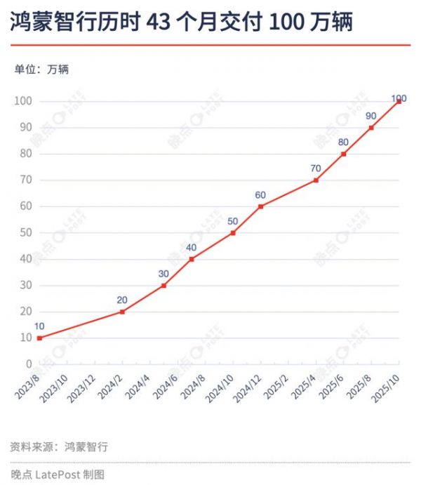 车企态度的转变源自鸿蒙智行的表现。10 月底,鸿蒙智行宣布达成百万交付量,用时 43 个月。相比理想用时 58 个月,零跑的 75 个月,鸿蒙智行最快达成目标。而经过三年多探索,鸿蒙智行的品牌矩阵初步成型:问界成为销量主力,智界、享界、尊界和尚界则在不同细分市场完善布局。