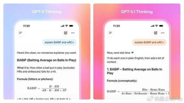 GPT-5.1 Thinking 的响应也更清晰,使用的术语更少、更通俗,并减少了未定义专业词汇的输出。这对处理复杂任务或解释技术概念时尤其重要。举例来说:解释 BABIP 和 wRC+。
