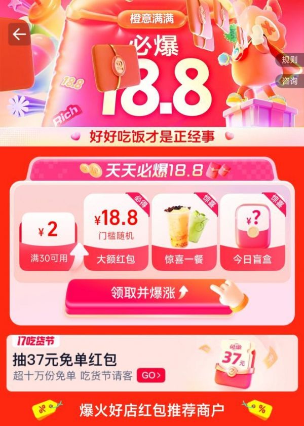 但饿了么并没有写信,而是在“天天逼爆18.8元红包”的页面,写了一句文案: