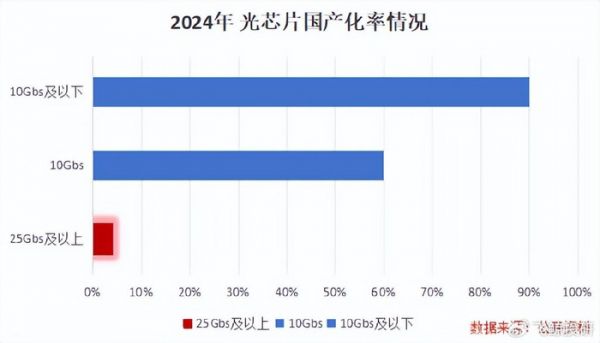 长期以来,我国25G以上高速光芯片市场就被外企垄断,即便是2024年,国产化率也仅有5%左右,海外厂商仍占据主导地位。