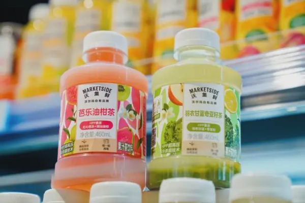 沃集鲜 HPP 果茶系列,用梨汁代替白砂糖调味,芭乐油柑茶甜度降至 10.8% ,羽衣甘蓝奇亚籽茶甜度控制在 9.8%。