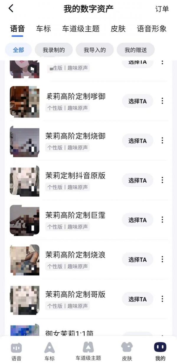 顺利完成安装后,记者再打开百度地图App,果然在“我的语音包”功能中,出现了多个“茉莉定制”的语音包,语音包封面图便是之前一些商家通过马赛克遮盖的部分,这些语音包已经可以使用。