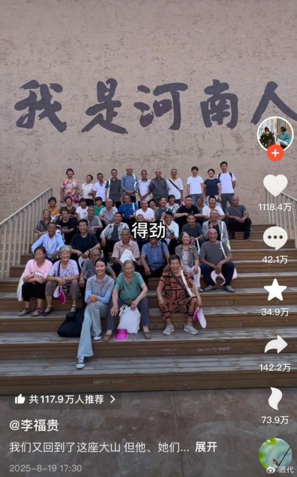 河南官方媒体曾评价其成名之路,认为“真诚是必杀技”。数据印证了这一点:去年7月末,她的粉丝突破100万;今年6月,涨至500万;而就在今年8月带46位老人旅游的视频发布后三日,其粉丝数狂飙至1000万。