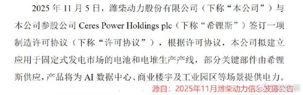 11月,公司与Ceres签署制造许可协议,彻底打通“电池-电堆-系统-电站”全产业链,为后续大规模商业化铺平道路,更助力其在AI数据中心市场占据先发优势。