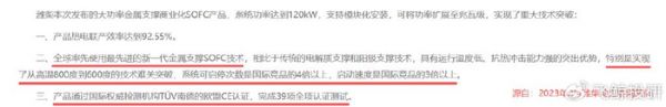 2023年其推出了大功率金属支撑商业化SOFC产品,热电联产效率达92.55%,创全球最高记录,且启动速度与启停寿命均领先国际竞品。