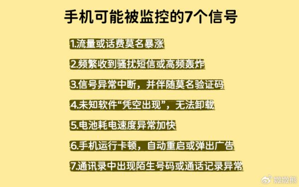 如果你的手机出现以下7种异常信号,很可能是被恶意软件监控的预警,建议及时寻求专业人员协助排查,必要时可先关机处理!