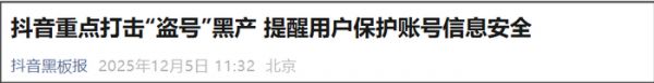 12月5日,“抖音黑板报”官方微信公众号发文称,近期,抖音在日常治理中发现,有黑产团伙组织地推人员,以线下“扫码领鸡蛋”为名,诱骗用户配合登录,再通过黑产技术手段盗取用户账号,最终用于售卖、发布违规违法信息或直接盗刷虚拟资产获利。平台整理相关线索后上报至相关部门。目前,该团伙地推渠道负责人、客服及技术提供者等5名犯罪嫌疑人已被依法刑事拘留。抖音提醒广大用户保护自己的账号隐私信息,避免成为盗号黑产“工具人”。