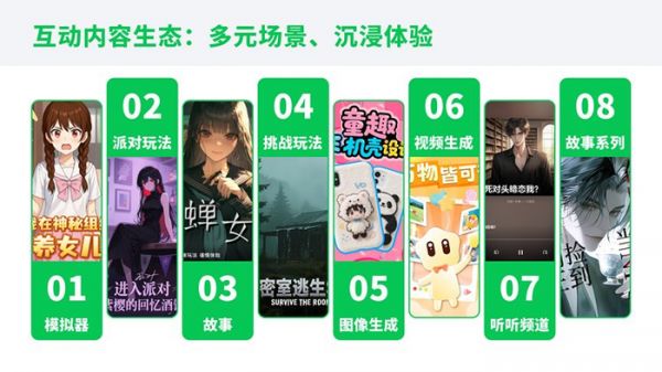 它有几个特点,一是全平台多故事线打通的互动;二是不停增加的多模态的互动体验;三是个性化,每个人的剧情发展都可以不同,还可以二创n创。