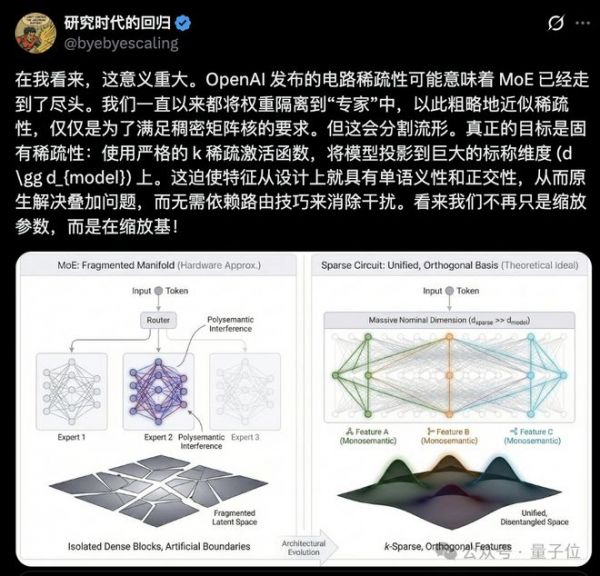 更有人直言这种「极致稀疏+功能解耦」的思路可能会让当下热门的MoE(混合专家模型)走上末路。