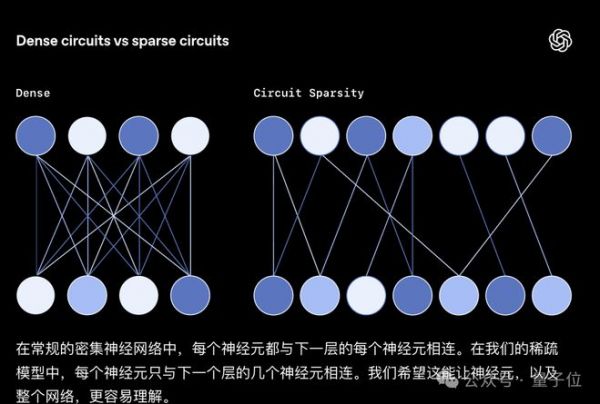 这是一种通过人为约束模型内部连接的稀疏性,让模型计算过程可拆解、可理解的大语言模型变体,本质上是为了解决传统稠密Transformer的黑箱问题,让内部的计算电路能被人类清晰解读,知道AI是如何做决策的,避免轻易相信AI的胡话(doge)。