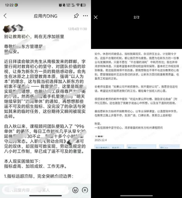 还有位员工写了封「给俞敏洪的回信」,里面说您在南极看冰山,我在出租屋看数字:续费率、转化率、复盘表格进度条。小雷看了之后苦笑出声,不是真笑,而是觉得有点太真实了。