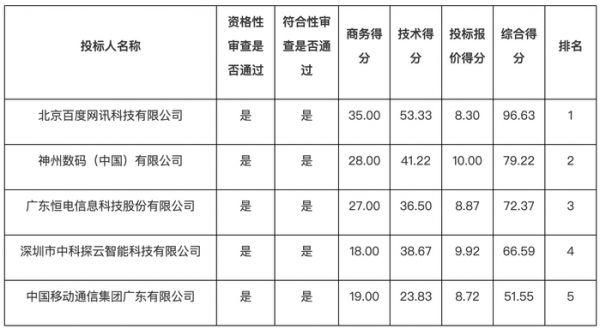 合同签订后,投标人需在36个月内完成全部模块的上线、私有化部署交付、试运行和验收。除百度外,另外几家投标人分别为神州数码、恒电科技、中科探云、中国移动通信集团广东有限公司。