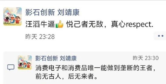 紧接着在评论区直指汪滔是,“消费电子和消费品唯一能做到垄断的王者”。