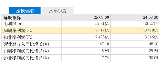 归母净利润7.92亿,同比下滑近6%,扣非净利润同比下滑7.74%。