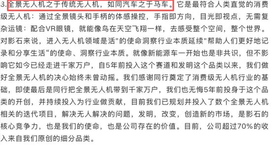 在刘靖康看来,影石的全景无人机之于传统无人机,如同汽车之于马车。谁是马车就不用明说了。