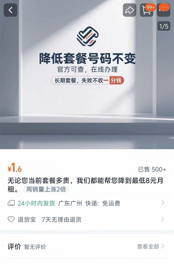 (图源:淘宝)为了对付升易难降的套路,在电商平台上还冒出不少“代降费”的服务。简单来说,就是让他们帮你避开一切套路,直接找到官方客服把原本的套餐,降成保号套餐。不难看出,运营商的套路已经让很多普通消费者相当苦恼,甚至还催生起了一些特殊服务,只有通过这样的方式,才能成功避开所有陷阱。