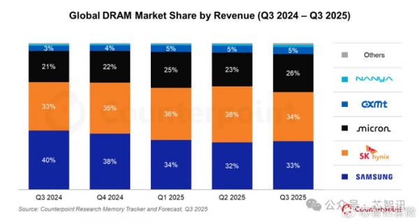 2025年三季度DRAM市场:SK海力士稳居第一,长鑫存储维持5%份额!