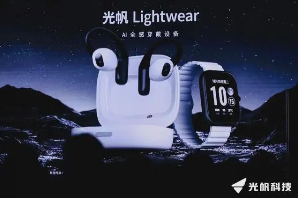 区别于其他 AI 硬件,Lightwear 给出的是一套组合产品:耳机、可以独立计算的耳机盒,以及智能手表。耳机负责听与看(拥有一颗低清摄像头),耳机盒装了 ESIM 卡,可以通信;手表则负责显示和触控。